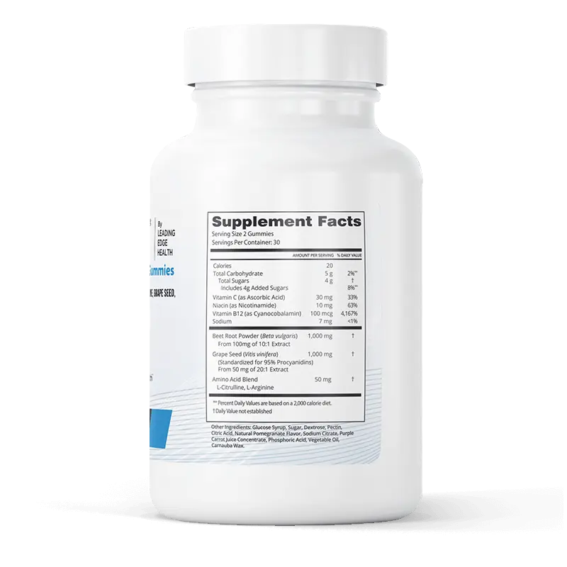 The official product highlights beet root plus six additional nitric oxide support ingredients in a gummy format.