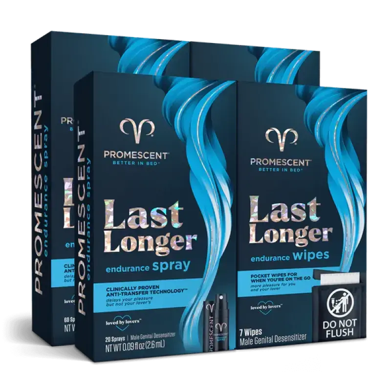 Promescent Endurance Duo is designed for flexibility and confidence in every situation. Keep Delay Spray in your nightstand for planned intimacy and carry Delay Wipes in your wallet for discreet, anytime use.