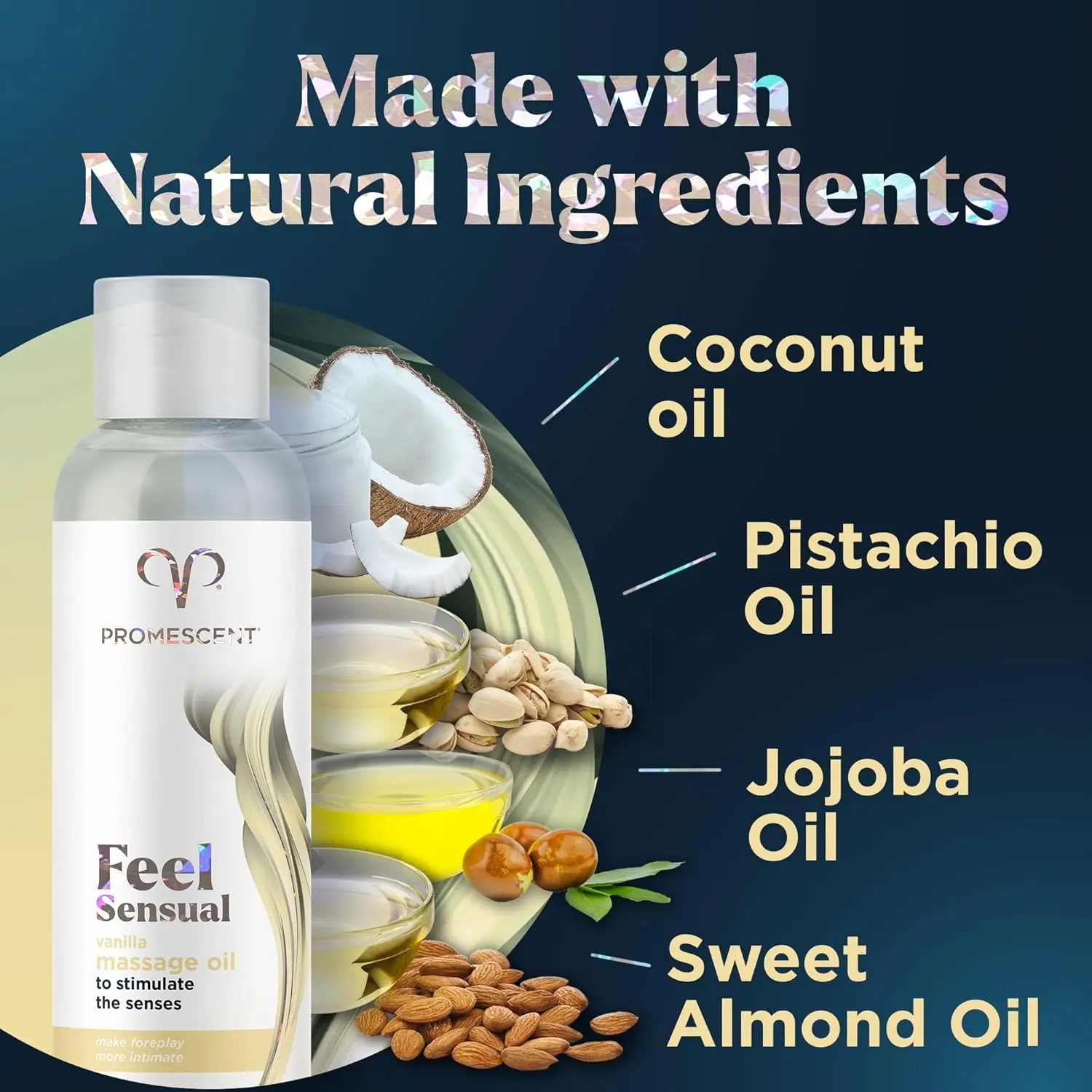 Warm your senses; deepen your connection. Promescent Vanilla Massage Oil blends skin-loving oils and an inviting vanilla aroma to relax tension, promote desire, and enhance intimacy. With pistachio, sweet almond, jojoba, and passion fruit oils, it’s designed to hydrate skin and mood alike.