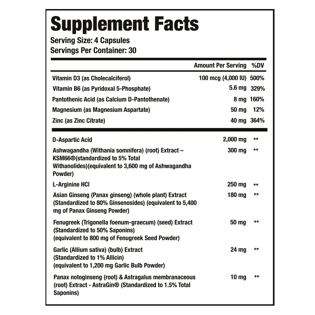 A daily men’s supplement designed for natural testosterone support, endurance, recovery, and overall vitality.