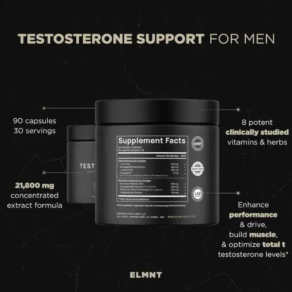 ELMNT Health Testosterone Support for Men 90 Capsules