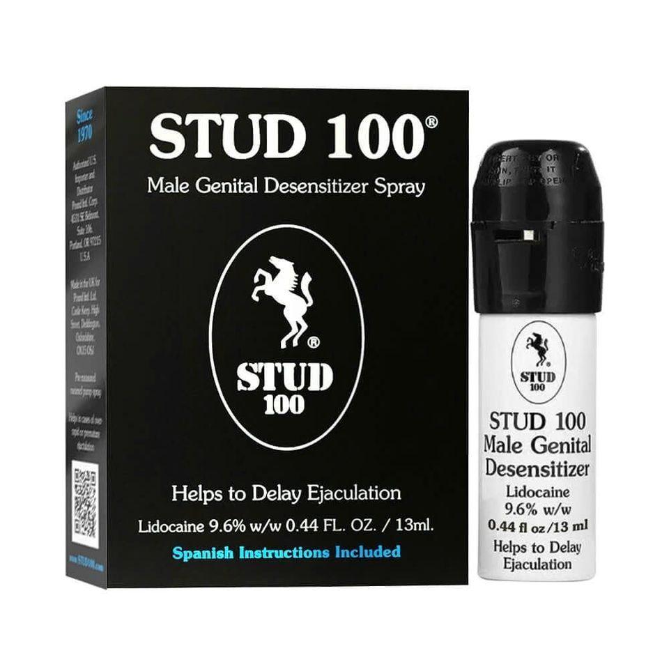 STUD 100 is a climax control spray for men that contains 9.6% lidocaine. It gently reduces sensitivity on the penis, helping men last longer during sex without losing pleasure.