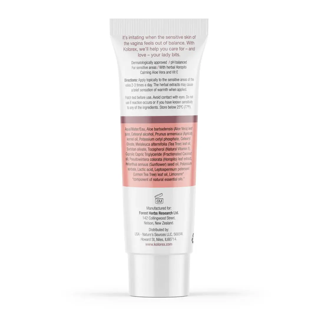 Kolorex® Vaginal Care Cream is a natural external-use product designed to relieve vaginal irritation and discomfort.