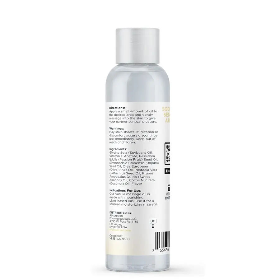 Ignite passion and unwind with Promescent® Vanilla Massage Oil. Infused with a warm, sweet vanilla aroma, this silky body oil enhances touch, relaxes muscles, and creates a sensual experience for couples. Perfect for intimacy, relaxation, or everyday skin nourishment.